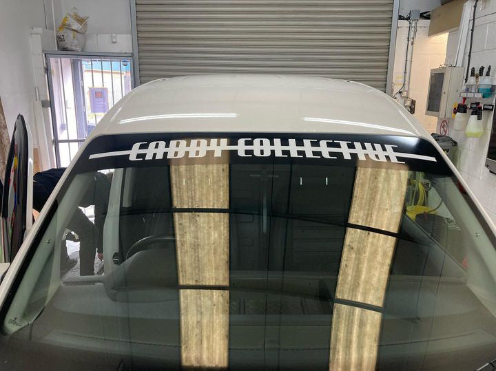Due to the amount of variations in window screen sizes and placement choices you will be supplied with a plain sunstrip that you will need to fit before applying the sticker, this way you are able to vary sunstrip size and sticker placement to suit.