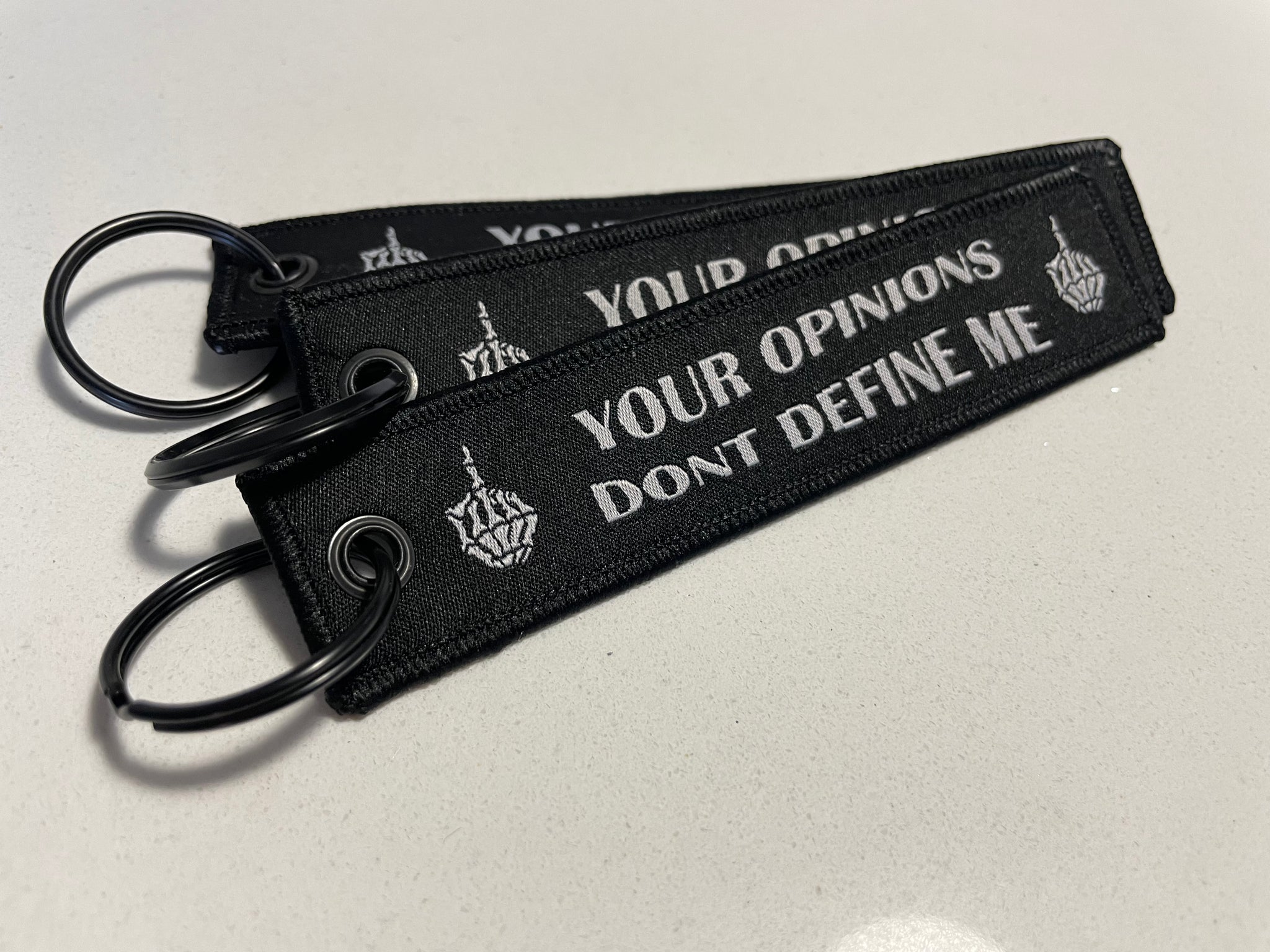BLACK FLIGHT TAG WITH SHAKEY LIFESTYLE ONE SIDE AND YOUR OPINIONS DONT DEFINE ME ON THE REAR.